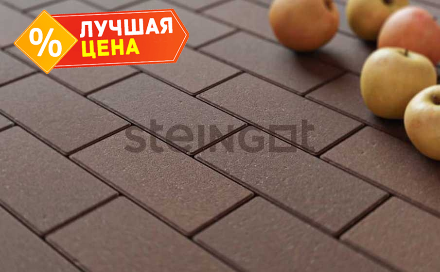 Плитка тротуарная Steingot Моно, Прямоугольник, фаска 1,5x1,5, темно-коричневый, 200x100x60 мм